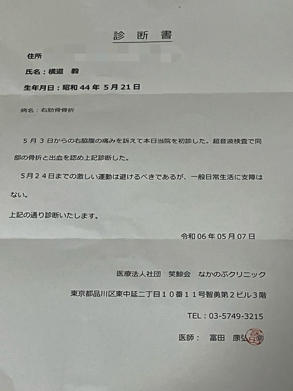 今はもう、笑っても、くしゃみや咳をしても脇腹全然痛くないのでご心配なく。