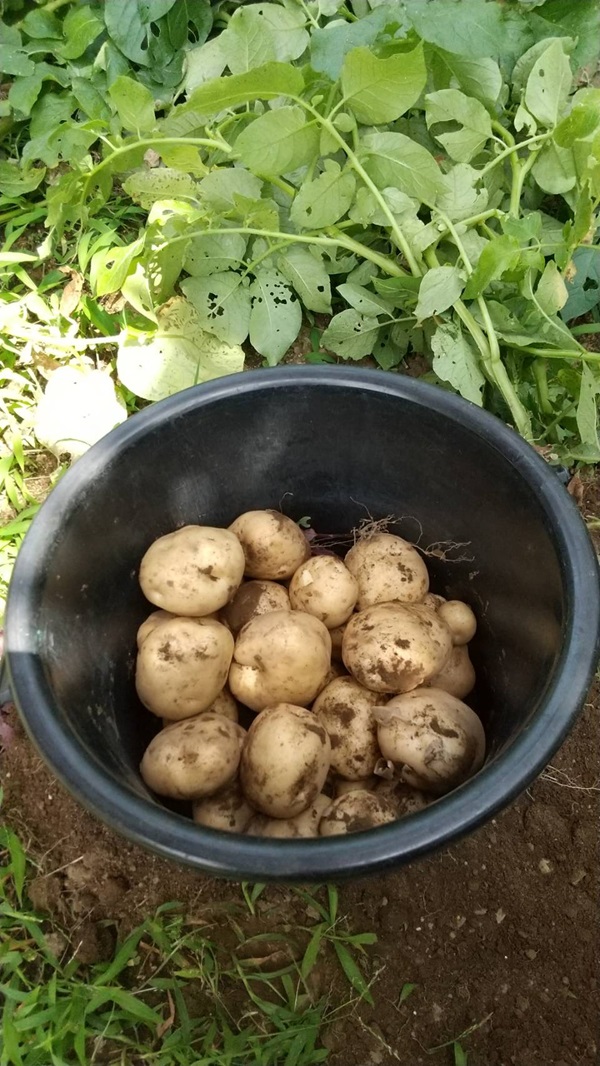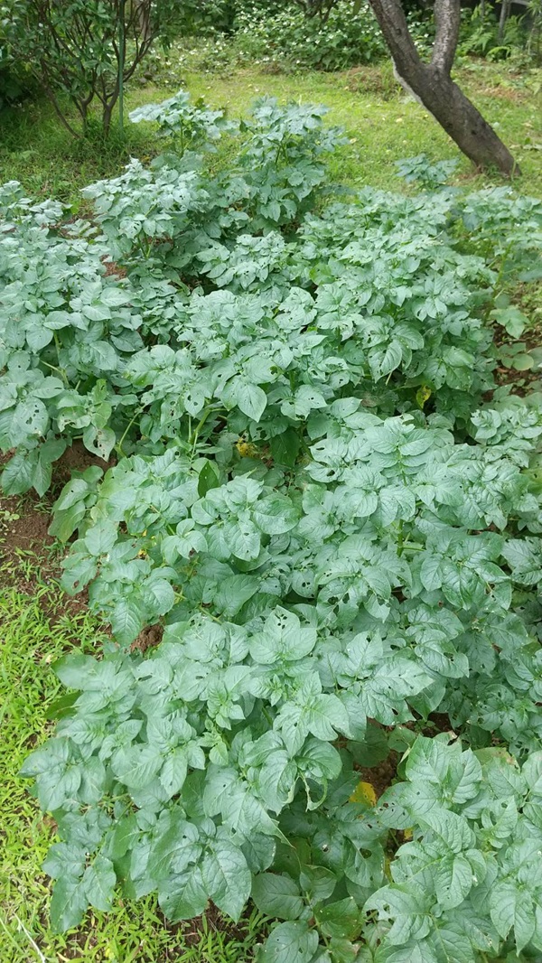 実家の庭にジャガイモ植えてみました。ジャガイモは手がかからず、とても育て易い野菜です。
