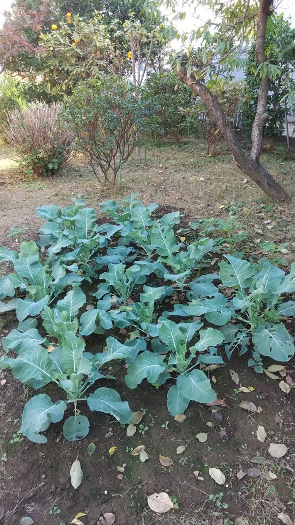 カリフラワーの収穫は冬が過ぎてからなんで、まだ欠片もありません。