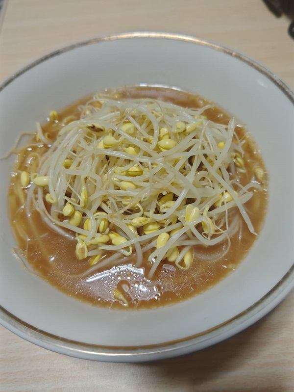 今日はコレ さっそく作ってみるあっ、これとは違うやつで「豚ラ王」ってのがあって、それは電子レンジで作れるニンニクガツン!ってきいてて 旨い! 出来た! またまたトッピングはもやし実は豚骨が好きなんだけど、これもなかなかどうしてどうして じゃ... -