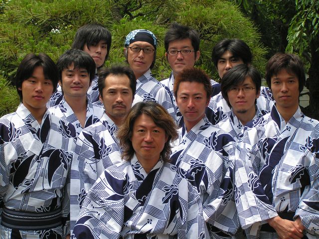 出演者全員で、花組格子の浴衣を着てみる、。圧巻!