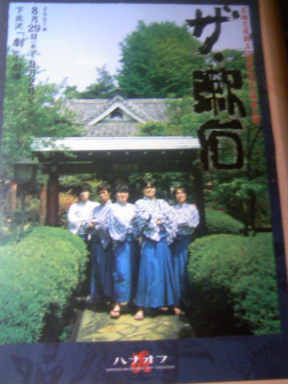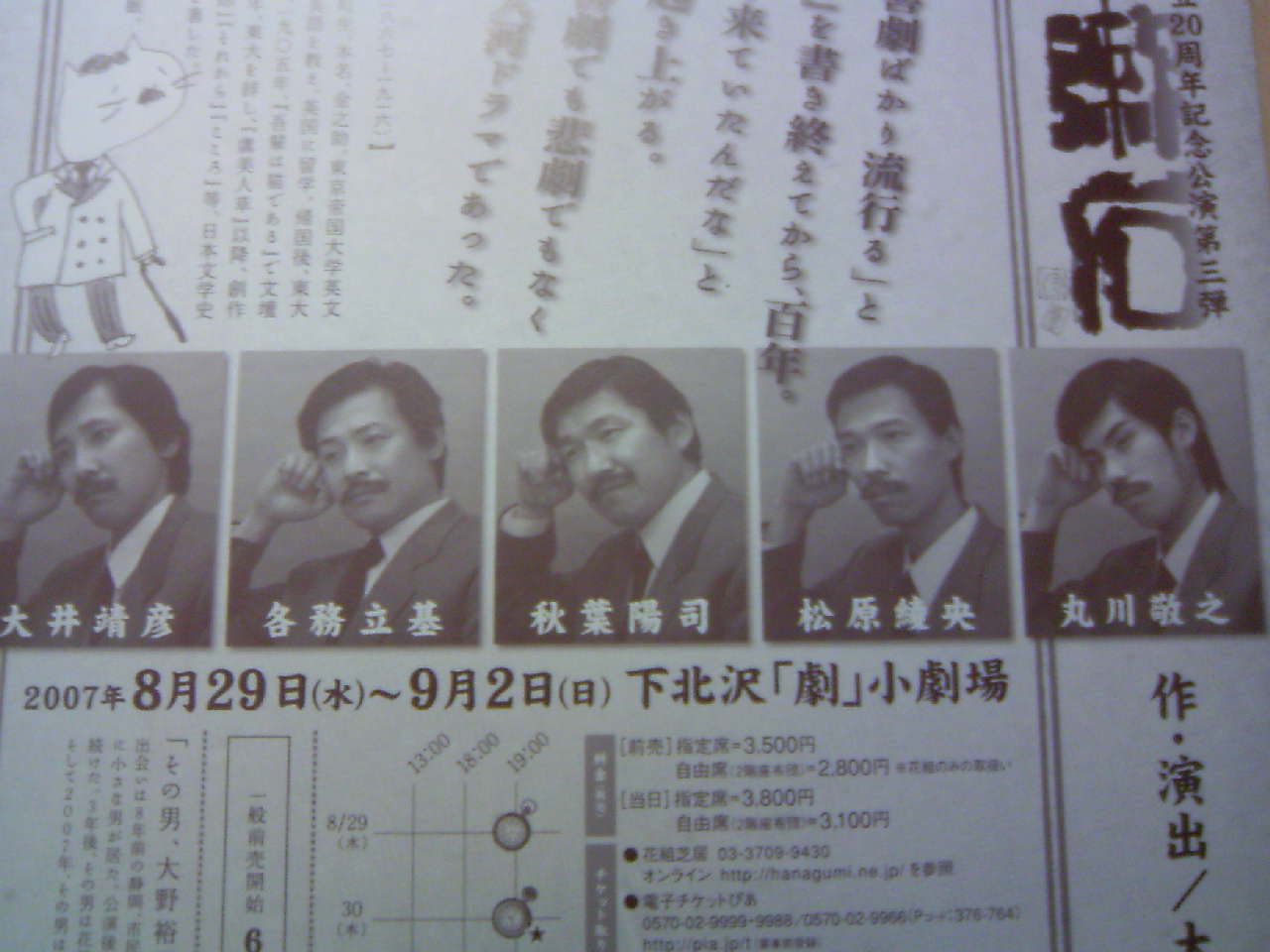 という事で、チラシの裏の役者写真。 「誰が一番漱石に似ているか」という企画で皆様に募集中! コメントを書いていただいた3名の方、まことに申し訳ございませーん!