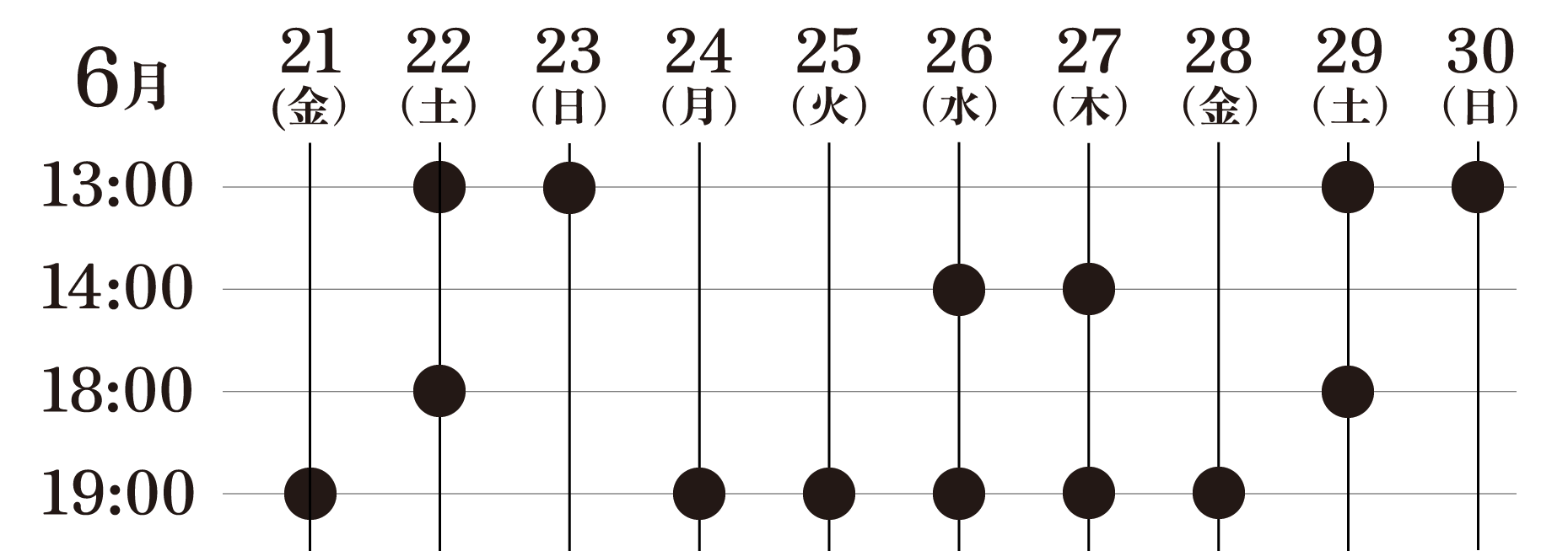※受付は開演の1時間前、開場は30分前。※開演後は本来のお席にご案内出来ない場合がございます。ご了承ください。