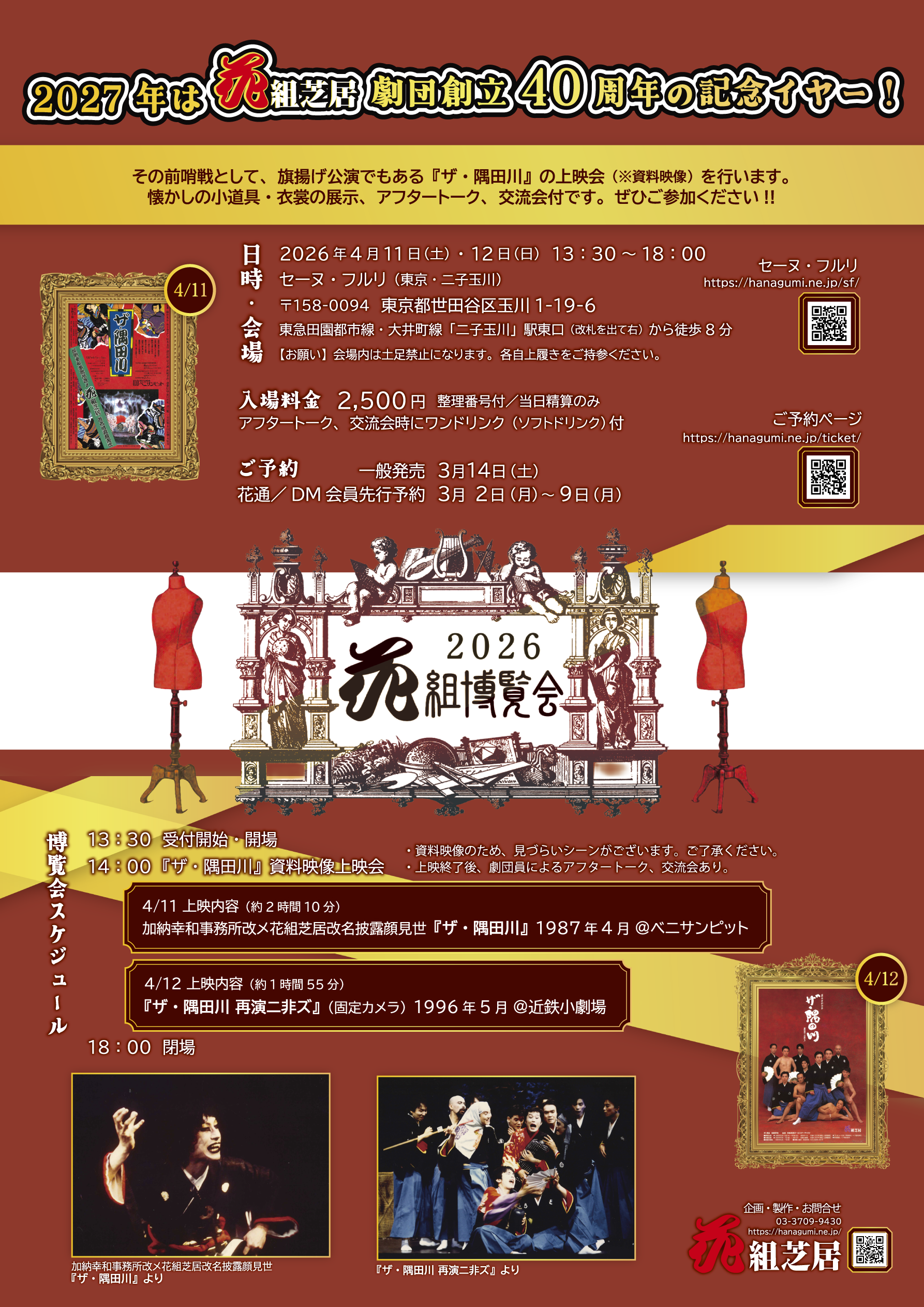 ※「先行予約有り」の公演は、「花組通信デジタル版」にご入会いただいてる会員様へご案内しております。ご入会時点で取扱いが終了している公演もございます。ご了承ください。